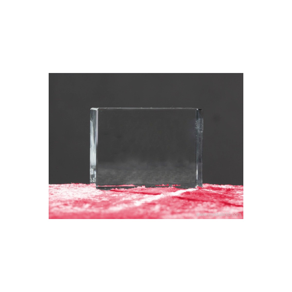A crystal frame (6*8*3 cm = 2.4*3.1*1.2"), an ideal shape for small business projects. It can be decorated with 2D graphics, a company logo and a short text. 2D project is included in the crystal's price. Also small 3D graphices are possible, however, due to small crystal's thickness, please, ask about technical possibility of your 3D model engraving.