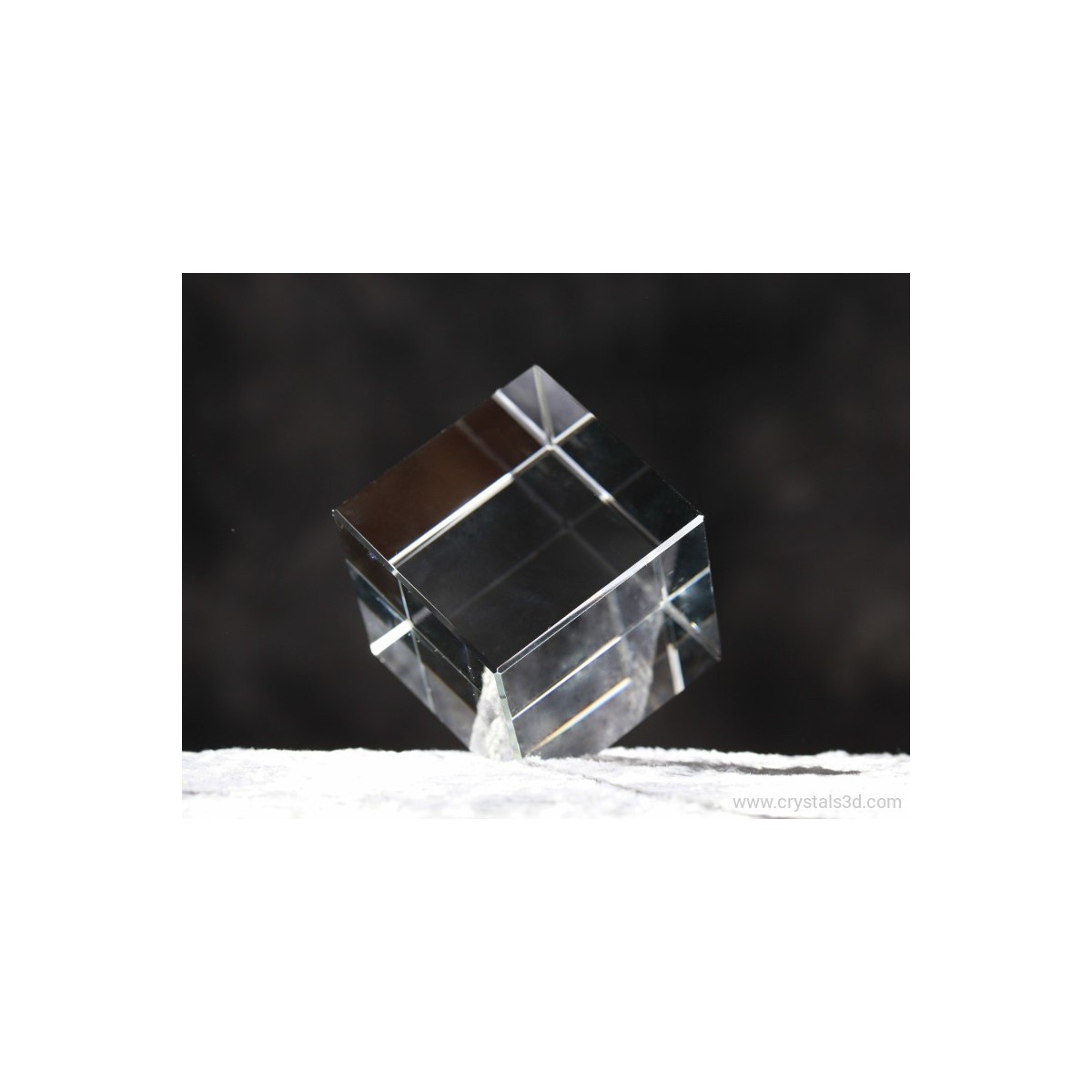 A crystal cube, on a cut base, a great idea for a business gift or a gadget.