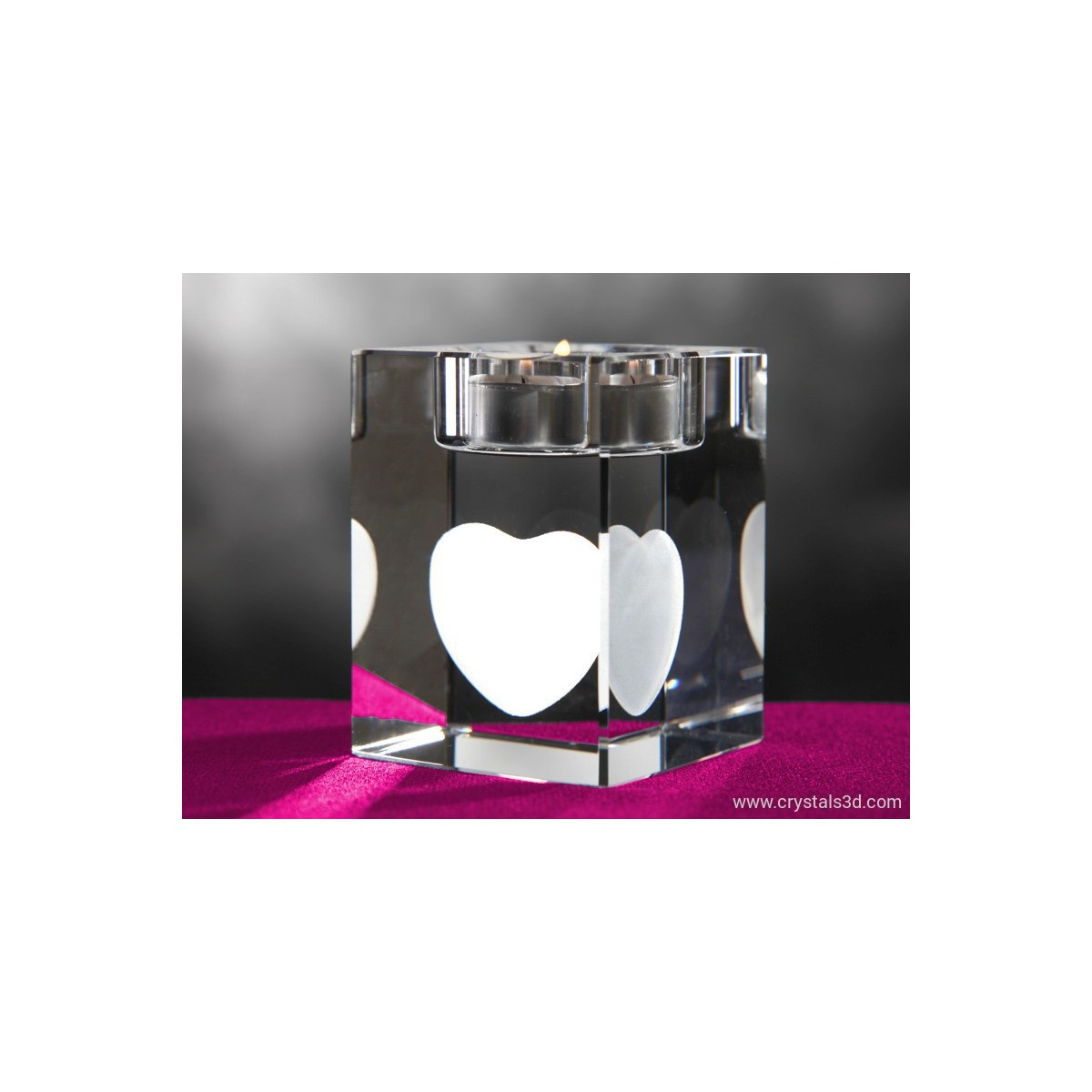 Kryształowy świecznik o wymiarach 6*6*8 cm, z kieszonką na świeczkę (podgrzewacz) oraz z projektem 3D.